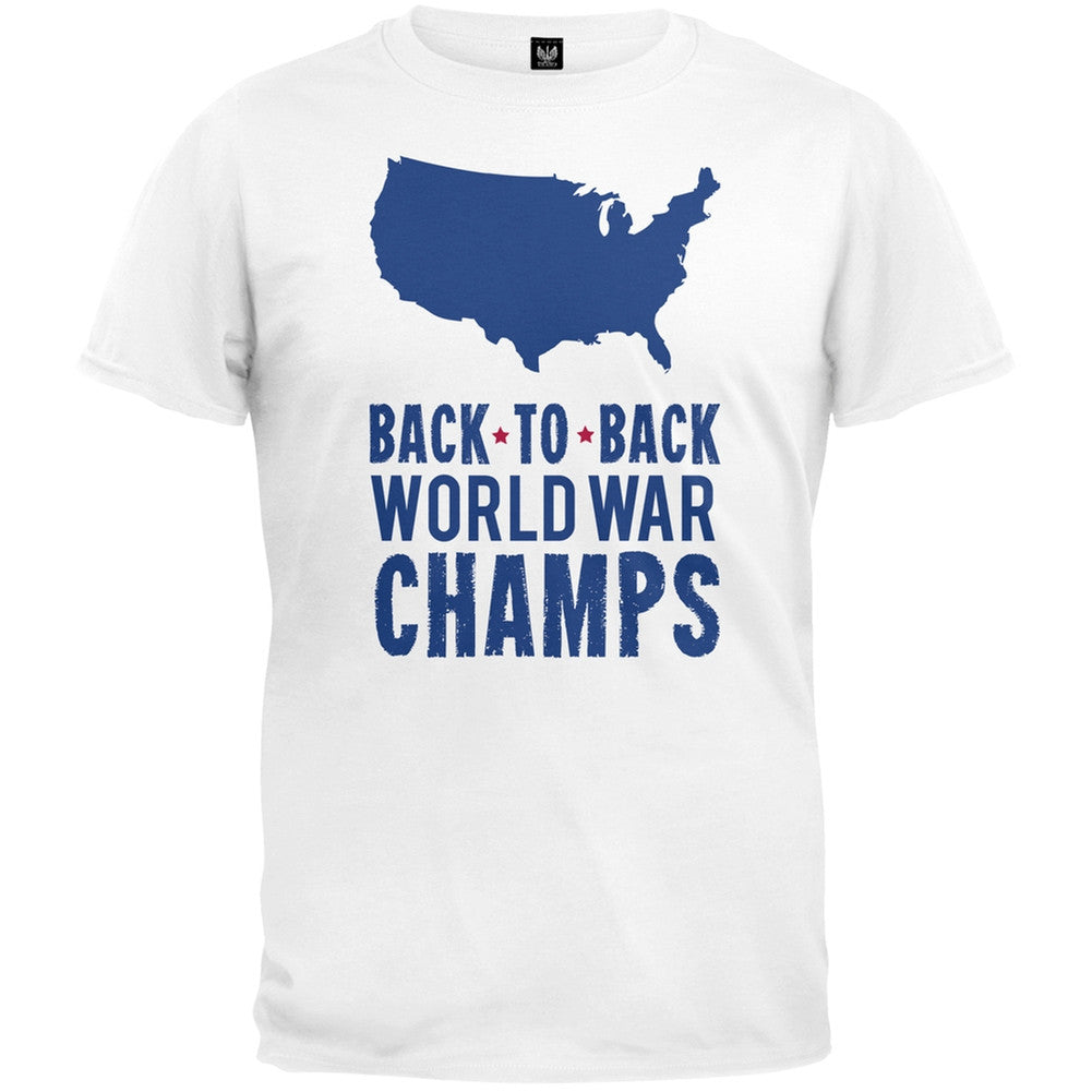 We beat the Kaiser and we beat the Nazis, so wear a friendly reminder with this white, 100% cotton t-shirt. A silhouette of Continental 48 is featured in a "Back to Back World War Champs" graphic across the front. USA! USA! USA! USA! USA! USA! USA! USA