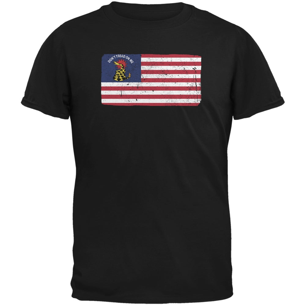 American Gadsden Flag Distressed Black Adult T-Shirt