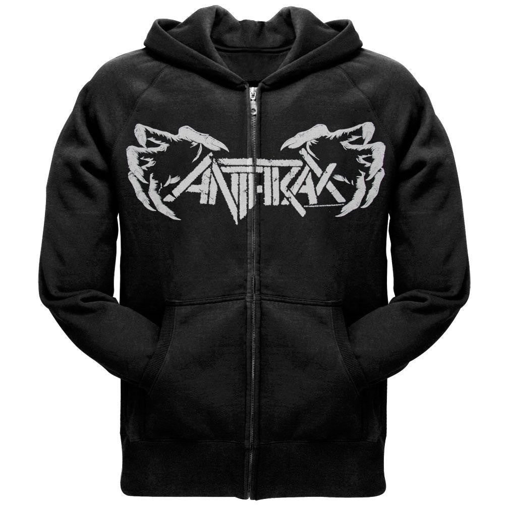 Anthrax gets snatched in a claw-grab logo graphic on the front of this black hooded sweatshirt with Worship Metal in a matching print on the back. Features a zippered front, drawstring hood, dual front pockets, banded wrists and waist and a heavy 80/20 cotton/polyester blend.