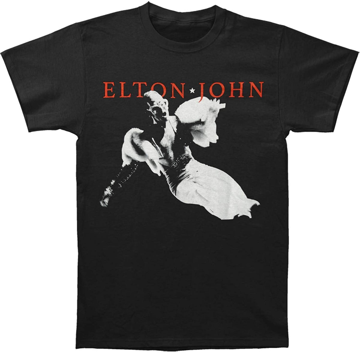 A homage of Elton John is featured on the front of this black, 100% soft cotton men's t-shirt. Pay tribute to the man with this great shirt! Since this is a soft shirt, we recommend ordering a size up if you like your shirts loose!