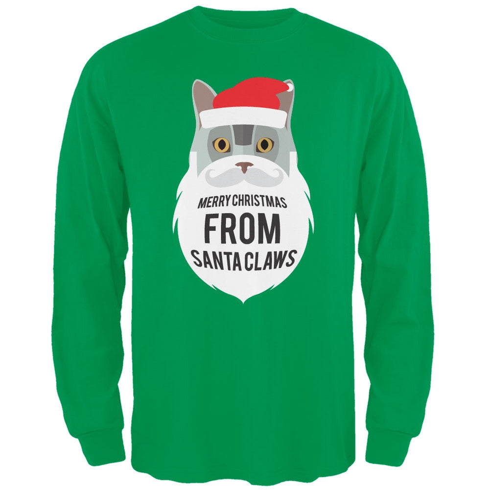 This original Animal World design is printed using cutting-edge direct-to-garment technology on a high-quality 100% cotton crew neck t-shirt. Featuring a grey cartoon cat with a beard and a santa hat saying "Merry Christmas from Santa Claws"