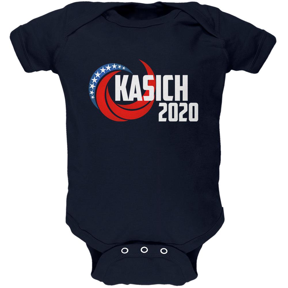 Show who you want to be in the presidential election in 2020 via your baby with this awesome baby one piece. This Old Glory design is printed on a 100% soft baby one piece, featuring the text "Kasich 2020" with a patriotic swoosh.