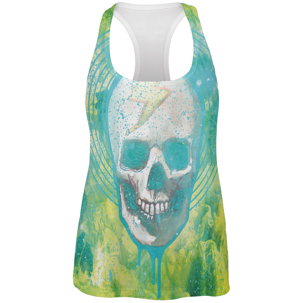 Halloween Lightining Bolt Skull Dristressed Plasma All Over Womens Work Out Tank Top
