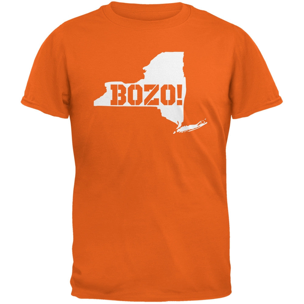 Remember the day the phrase was coined with this 100% cotton orange t-shirt featuring the word "Bozo" printed over a silhouette of the state of New York. A perfect shirt for the biggest football fans