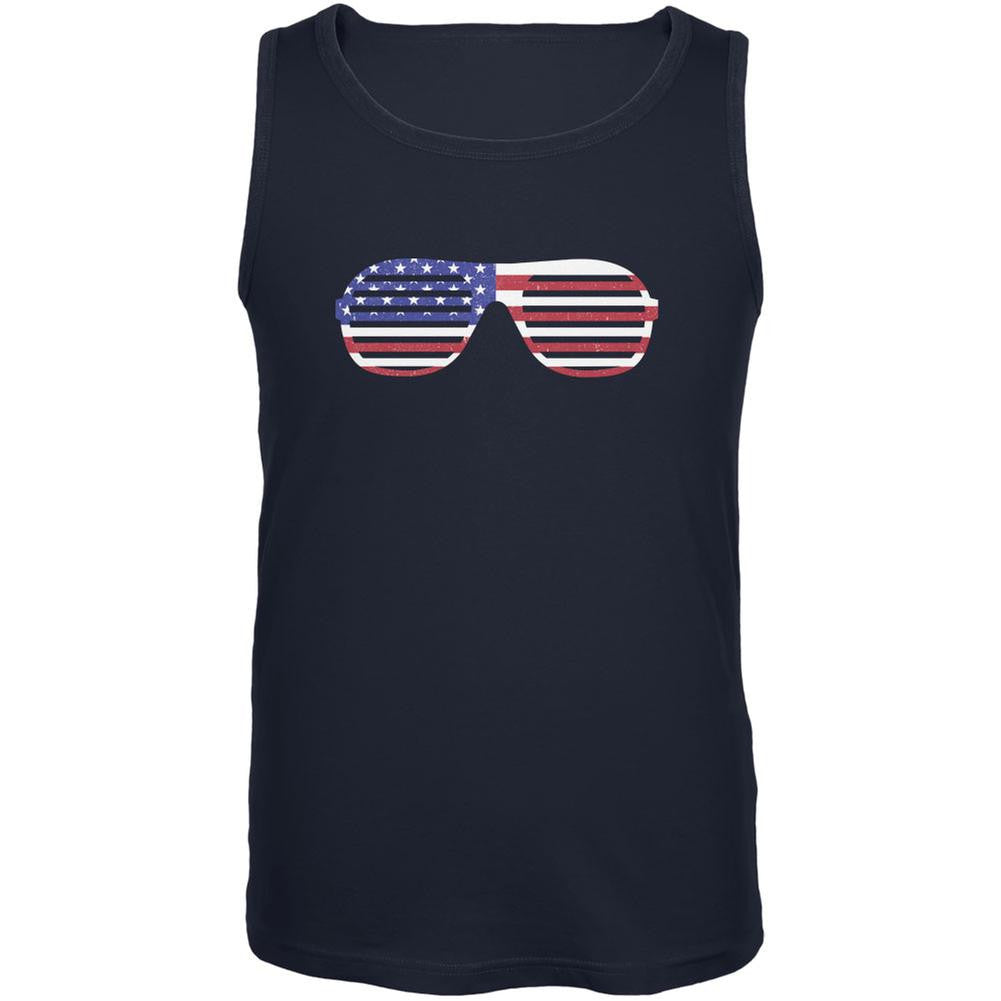 This Old Glory design is printed on a high-quality, 100% cotton, classic fit, adult tank top. Navy Blue tank with a Red, White & Blue shutter shades graphic.
