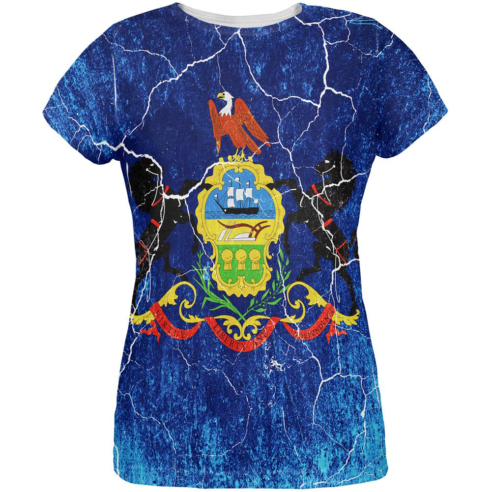 Pennsylvania Vintage Distressed State Flag All Over Womens T Shirt
