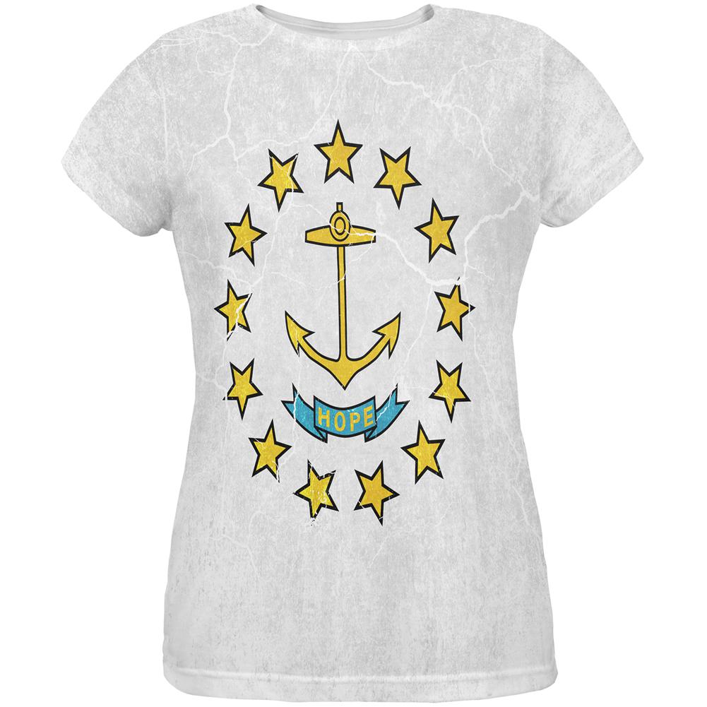 Rhode Island Vintage Distressed State Flag All Over Womens T Shirt