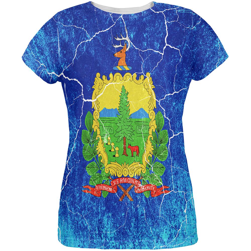 Vermont Vintage Distressed State Flag All Over Womens T Shirt