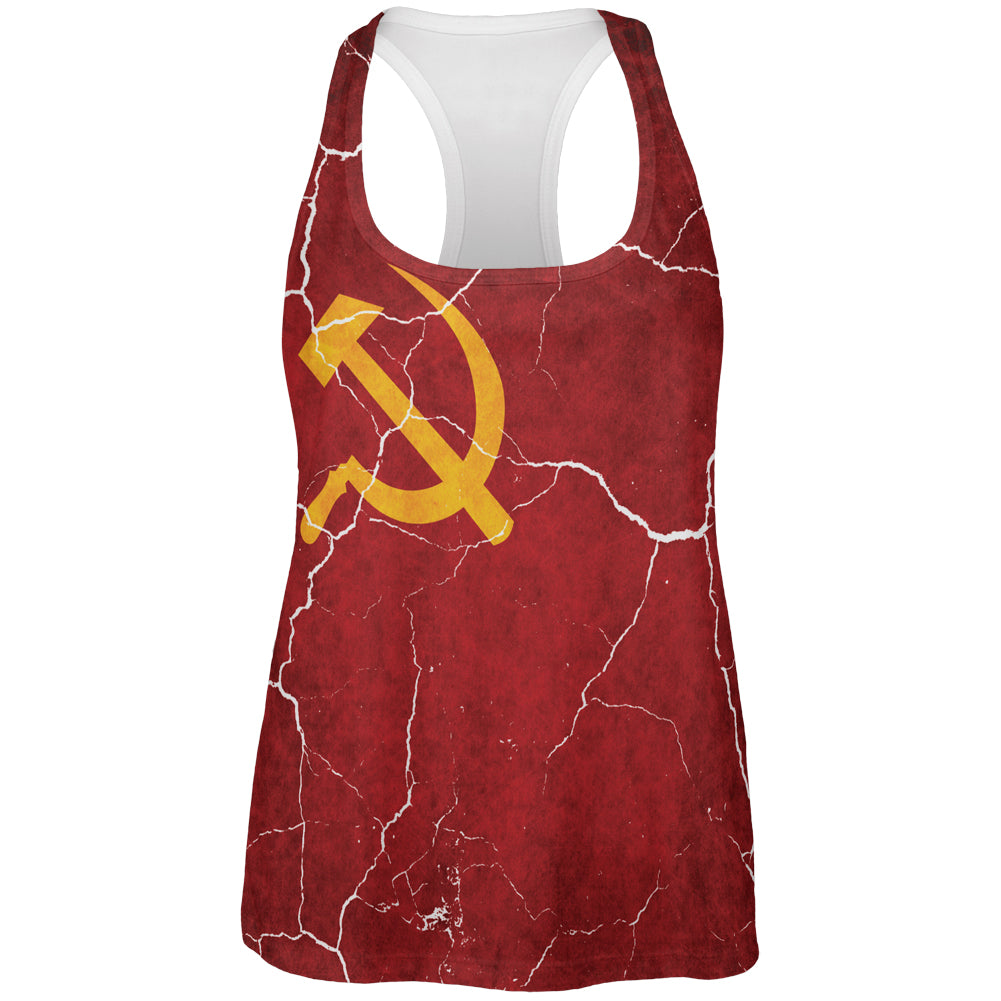 Distressed Soviet Union Flag All Over Womens Work Out Tank Top