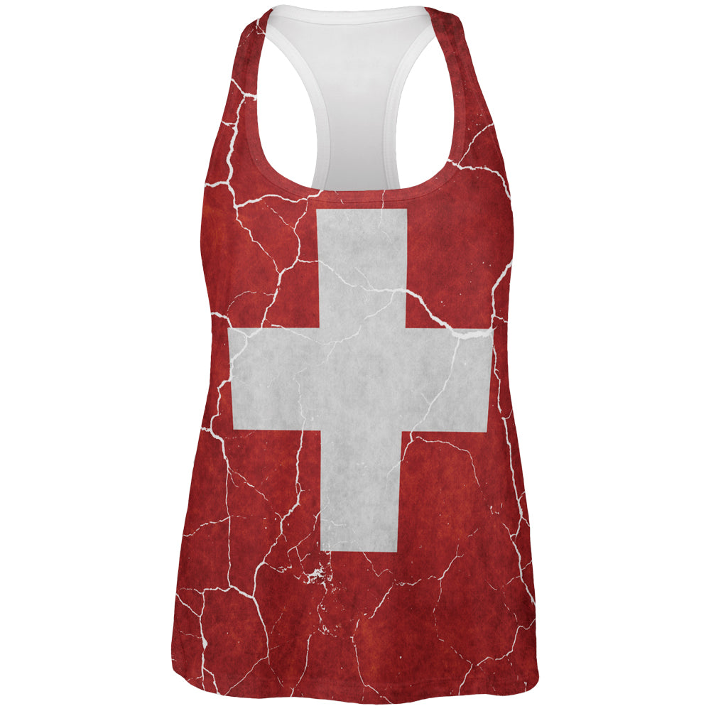 Distressed Swiss Flag All Over Womens Work Out Tank Top