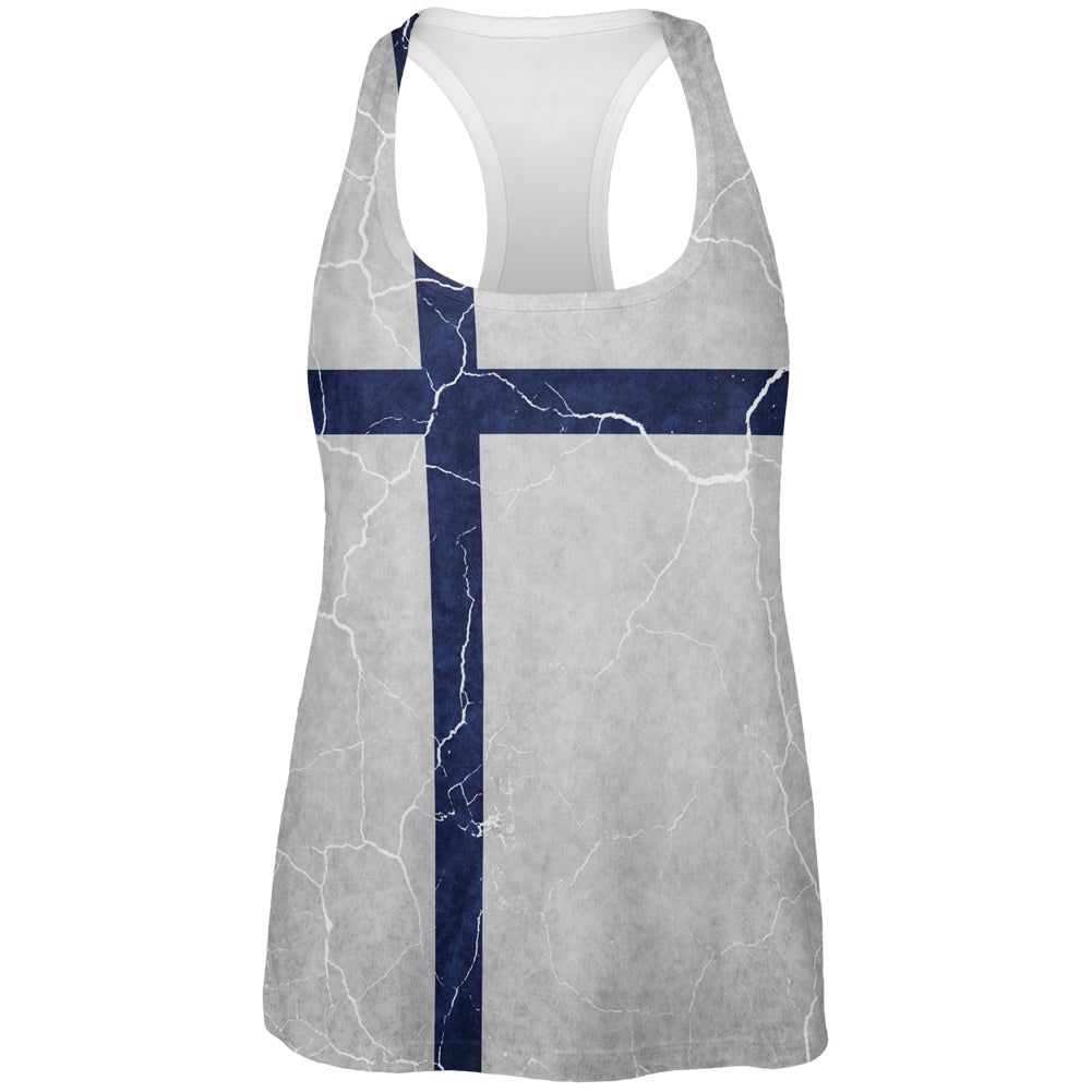 Distressed Finland Flag All Over Womens Work Out Tank Top