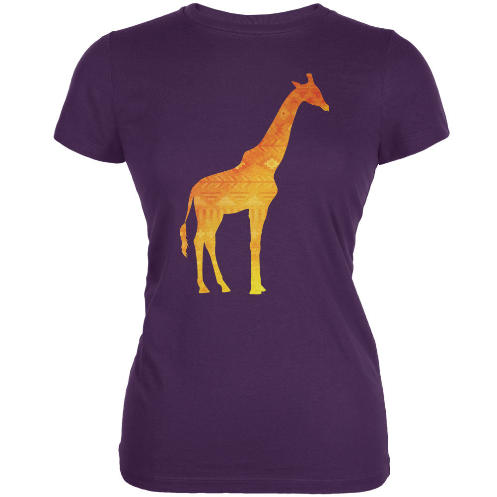 African Spirit Animal Giraffe Purple Juniors Soft T-Shirt
