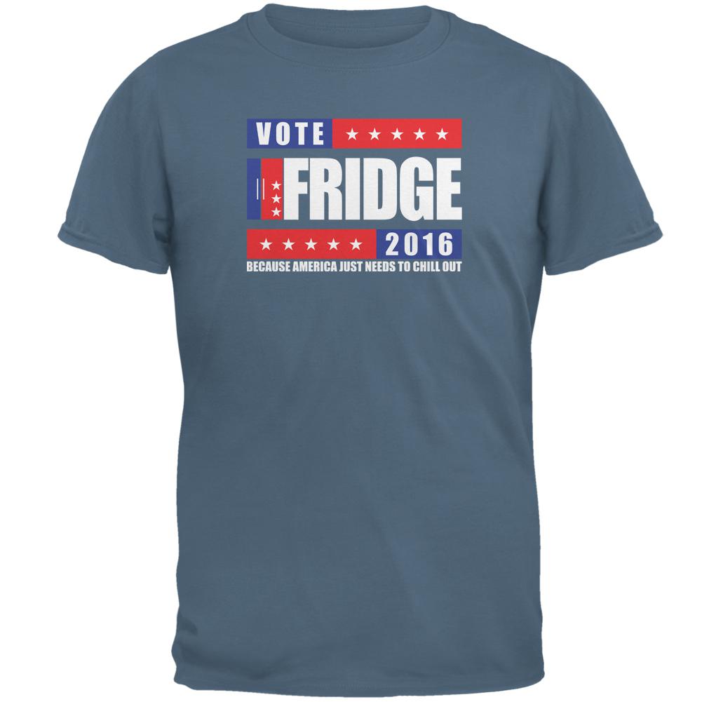Tell the world where your vote is going this coming election with this funny! This Old Glory design is printed on a 100% cotton men's t-shirt, featuring the text, "Vote Fridge 2016: Because America Needs to Chill Out" on the front in red, white and blue.