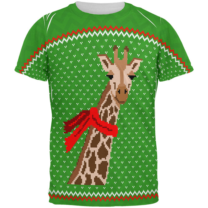 Ugly Christmas Sweater Big Giraffe Scarf All Over Mens T Shirt