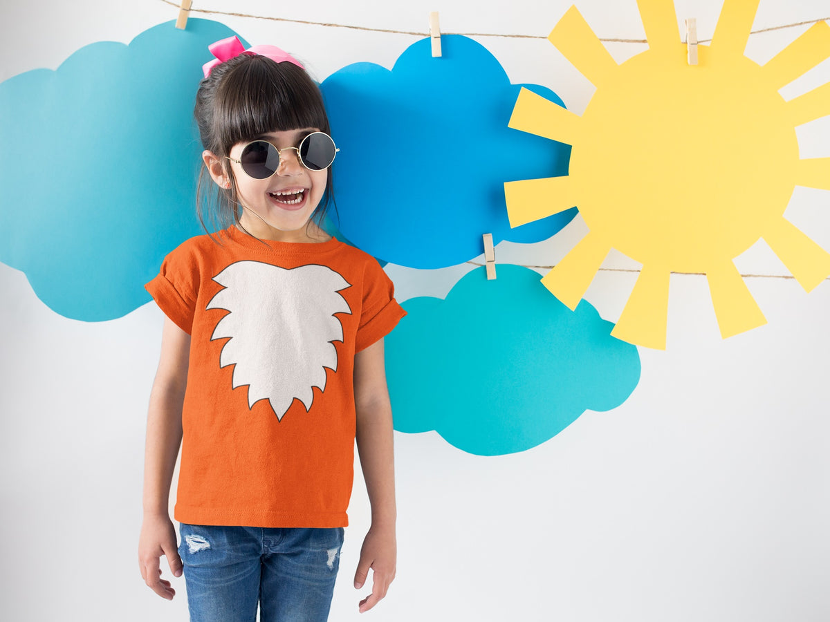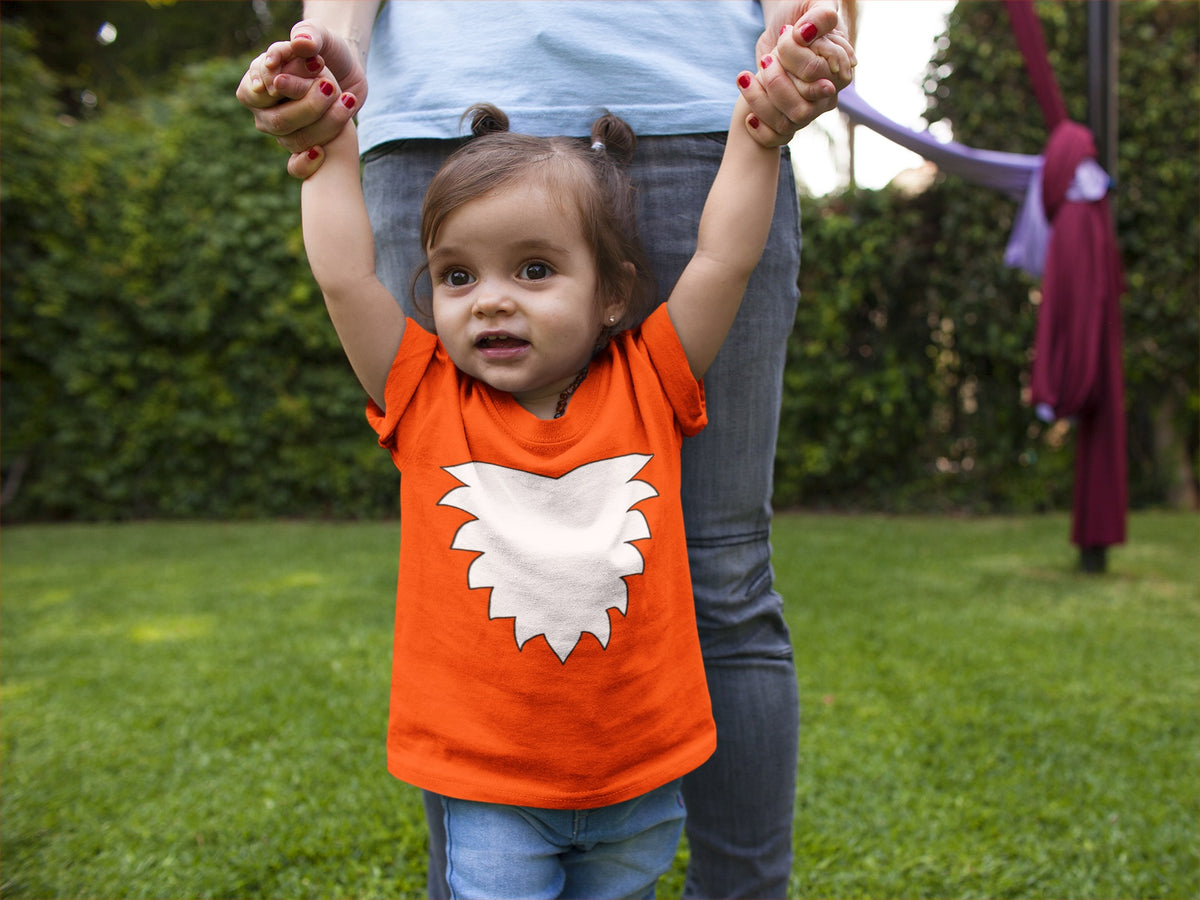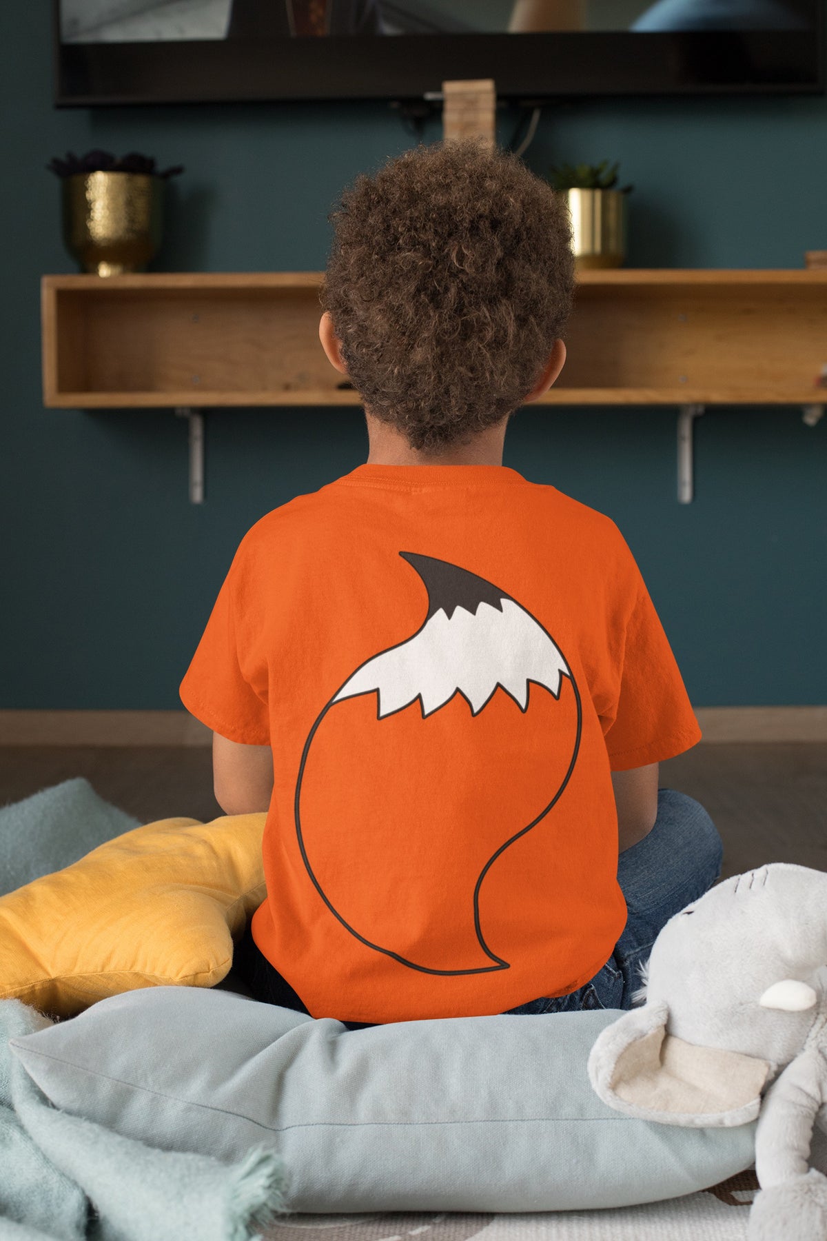 This adorable cartoon fox costume will be a huge hit this Halloween for your little tot. This Animal World design is printed on a high-quality 100% cotton, crew neck, short sleeve toddler t-shirt, featuring a fox fur design on the chest with a matching tail graphic on the back.