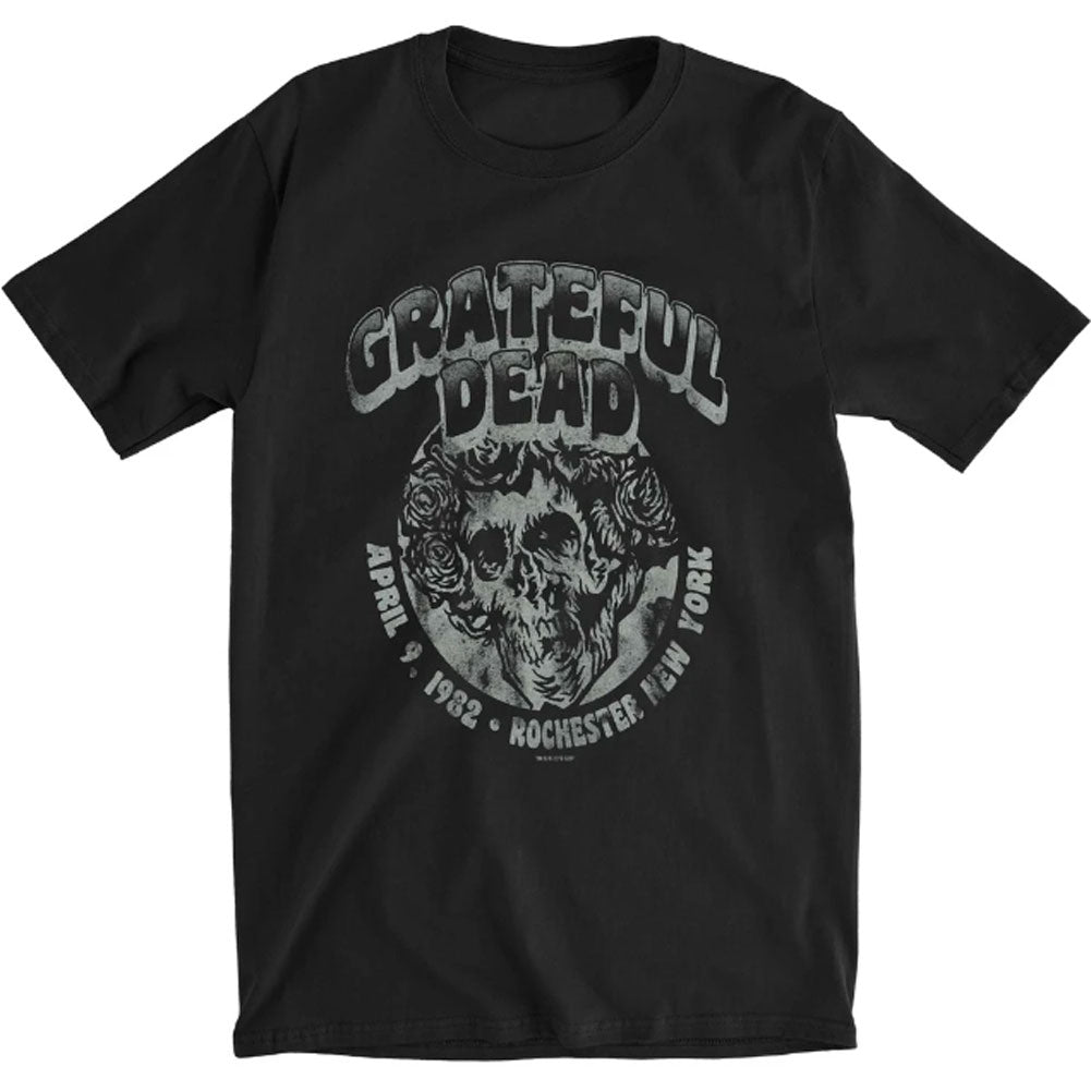 This Grateful Dead slim-fit concert tee features their classic Bertha illustration (a smiling skull with a crown of roses) from the poster design for their 1982 show in Rochester, New York. 100% cotton, crewneck T-shirt in black.