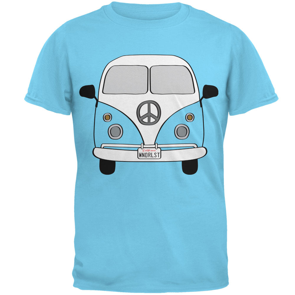 Sport your favorite mode of peaceful transportation in Old Glory's hippie bus graphic tee. Perfect for camping and adventures to the unknown, this colorful design is printed on a 100% cotton, adult-fit, short-sleeve T-shirt, with a California license plate that reads: "WNDRLST." Available in the following colors while supplies last: Bamboo Orange Tie Dye, Irish Green, Light Blue, Light Pink, Pinwheel Blue Tie Dye, Pinwheel Pink Tie Dye, Red, Sky Blue, and Yellow.