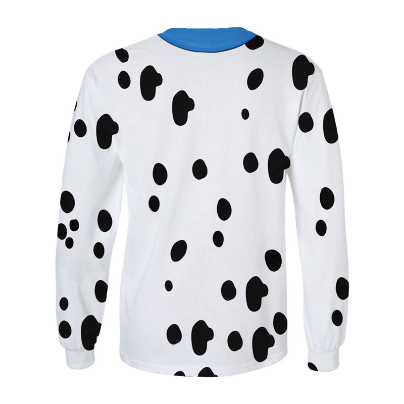 Halloween Costume Dalmatian with Blue Collar Mens Long Sleeve Sublimation T Shirt with Dog Ears Headband
