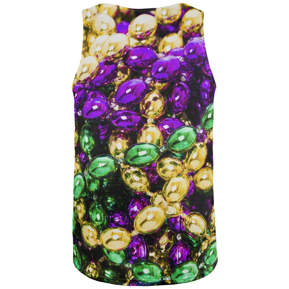 Celebrate Mardi Gras all year round with this tank top! Featuring an all over design with green, gold and purple beads printed on a 100% polyester men's tank top, you'll never feel out of the spirit again. The dye sublimation process creates slight imperfections that are unique to each item.