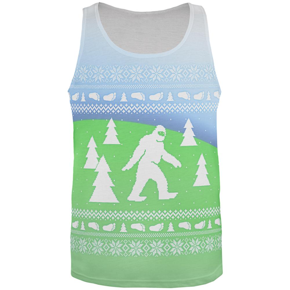 Ugly Christmas Sweater Bigfoot Sasquatch Yeti All Over Mens Tank Top