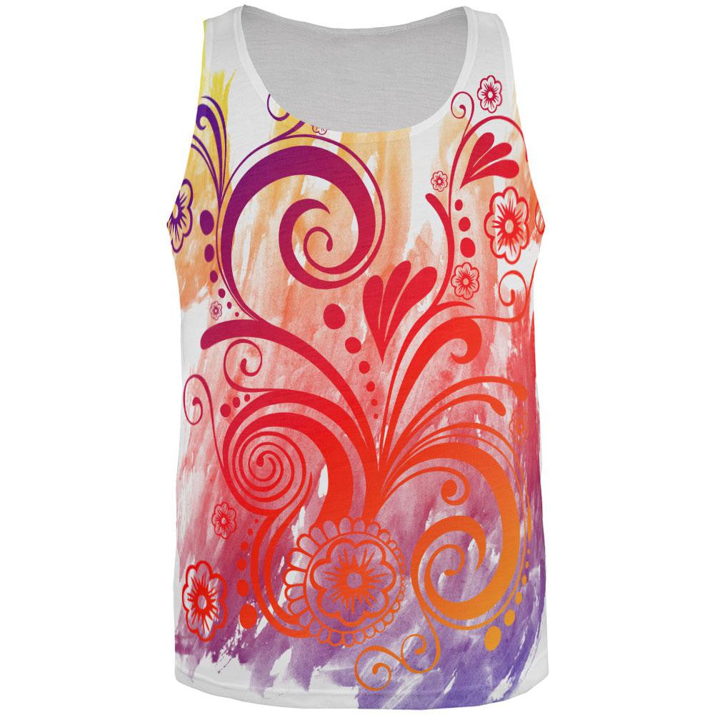 Henna Rainbow Watercolor Paint Swirls All Over Mens Tank Top